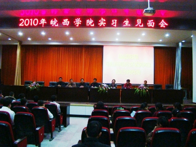 11月15日上午,億彩网迎来了皖西学院2010届实习生。学校由教导处牵头,在学术报告厅召开了见面会,举行了隆重而简短的欢迎仪式。在欢迎仪式上,张正好校长致欢迎词,皖西学院政法系潘主任致答谢词,实习代表发言,最后教导主任佘传理总结发言,对实习生进行了具体纪律要求。