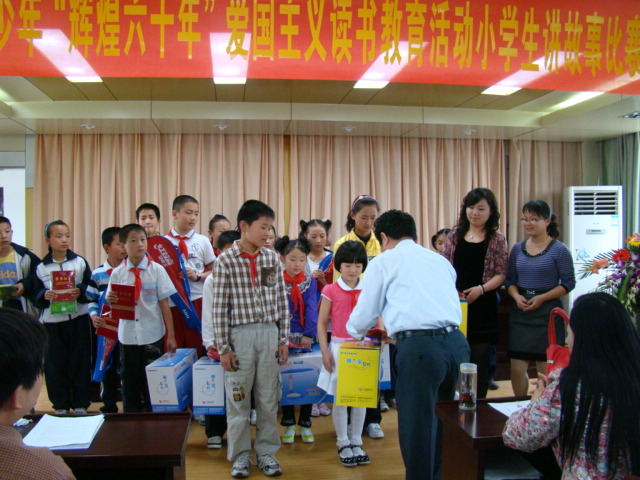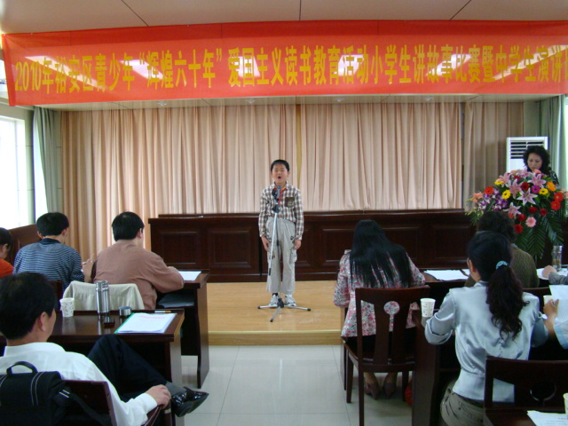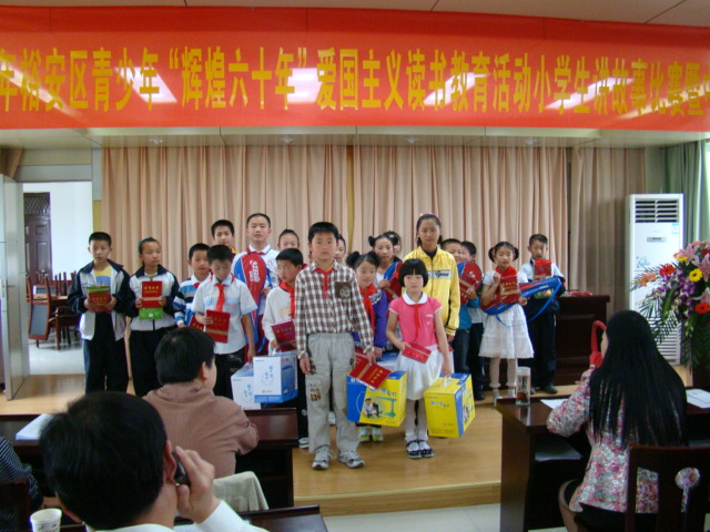 裕安区青少年“辉煌六十年”爱国主义读书教育活动小学生讲故事比赛,由裕安区委宣传部和裕安区教育局主办,至今已经举办了十六届。学校积极开展爱国主义读书教育活动,经过精心准备和认真组织,在学生中掀起了爱国主义读书教育活动的热潮。通过校内预赛选拔出两位同学代表学校参加区比赛。在5月8日的比赛中,江文韬和谷春晖同学表现突出,成绩遥遥领先,最终取得了特等奖的好成绩,为母校赢得了荣誉。