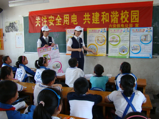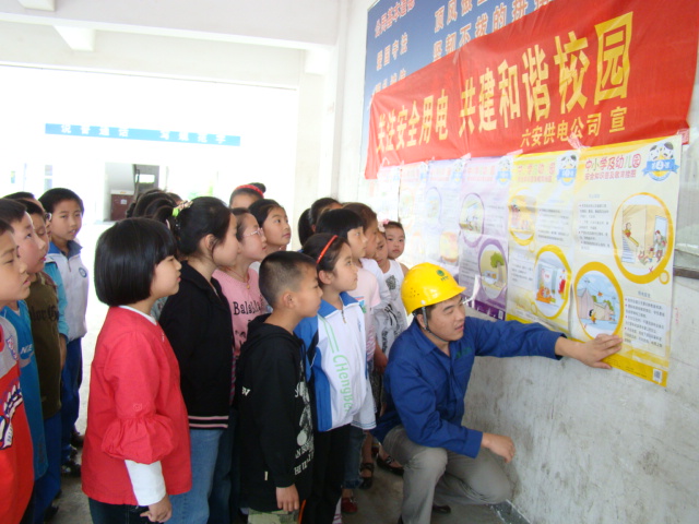 5月10日下午,六安市供电局在卞修山、汪钢、李准等的带领下,一行八人来到億彩网,给四(1)班的学生作了一场生动的《用电安全知识》专题讲座。