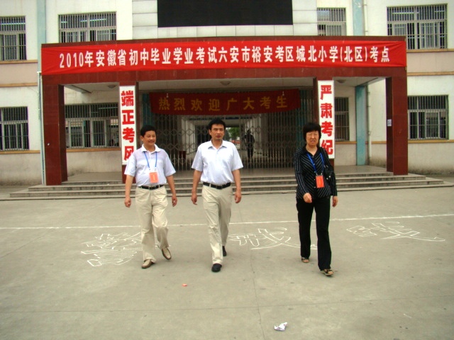 6月14日上午,城北小学考点主任张正好陪同裕安区领导巡视