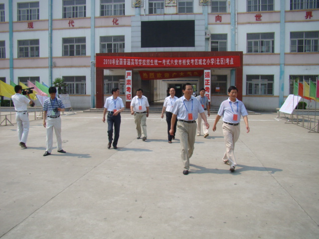 6月7日上午,高考第一天,裕安区委书记、区人大主任高斌,区委常委、宣传部部长张矩贵,区人大副主任王永济等区领导到城北小学高考考点,巡视各考场考试情况。同时,看望并慰问了有关考务人员和考生。城北小学考点主任张正好陪同巡视。