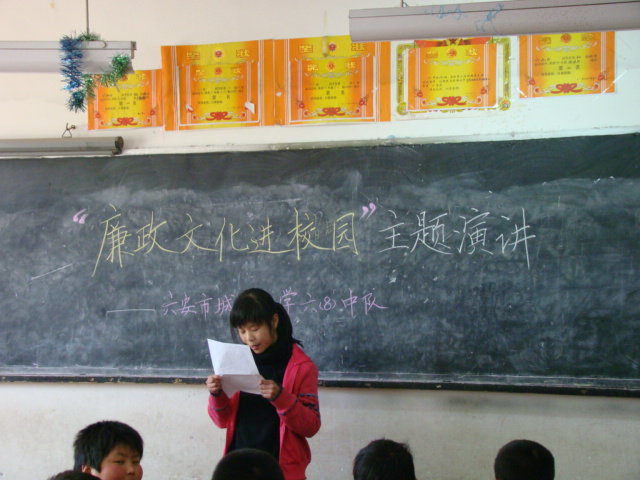 2011年3月24日在五、六年级开展了一次以“廉政文化进校园”为主题的讲故事和演讲比赛活动。