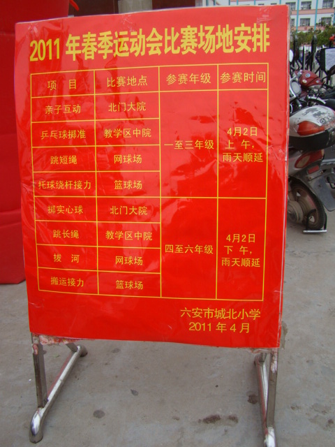 本届春季运动会的主题是:积极开展阳光体育活动,促进学生健康快乐成长。口号是:我运动、我快乐、我健康。比赛的项目有:韵律操、搬运篮球、掷实心球、亲子游戏、乒乓球掷准和拔河比赛等。