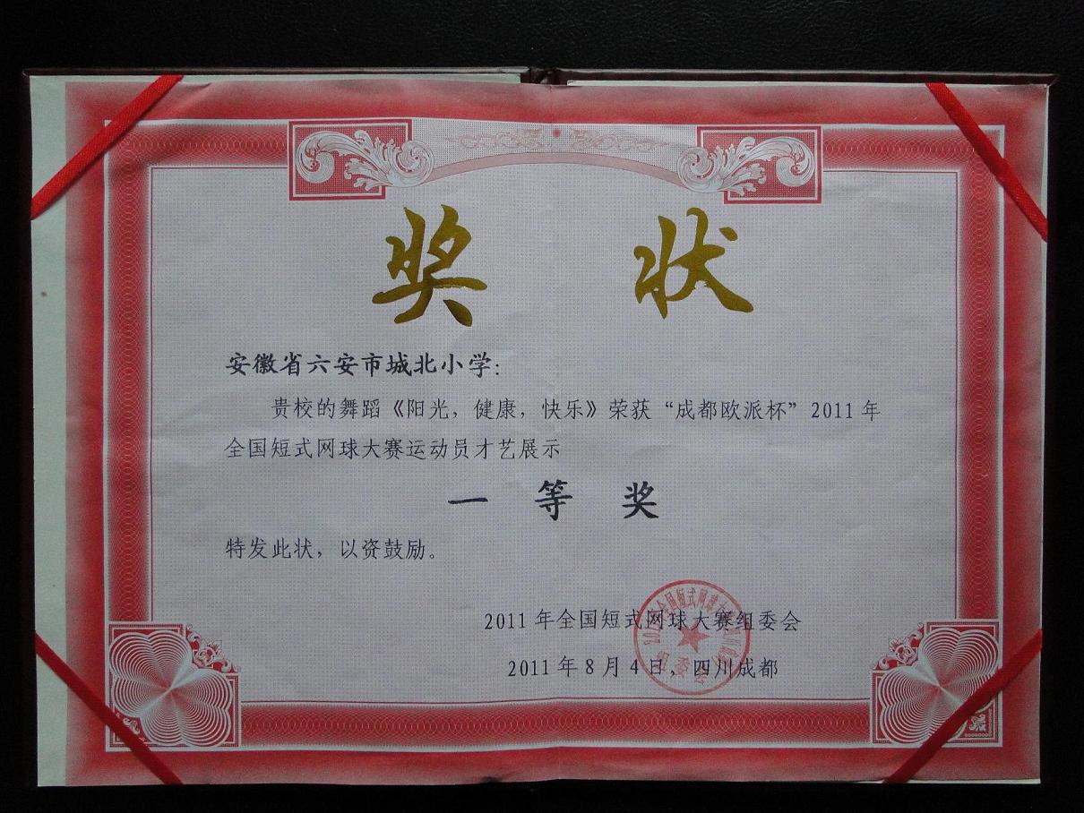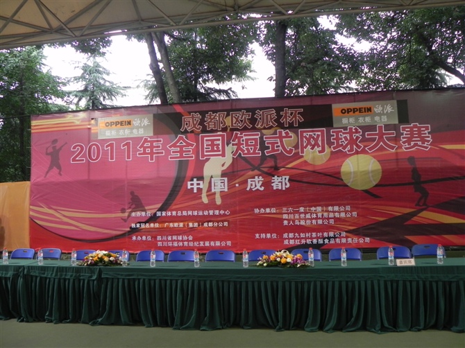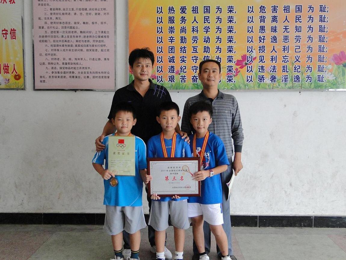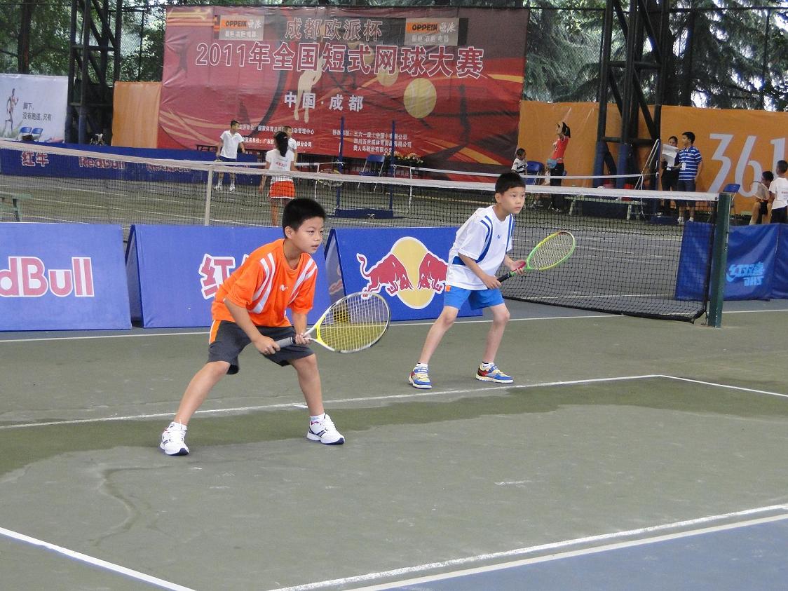 7月31日~8月5日, 由国家体育总局网球运动管理中心主办的2011年全国短式网球大赛在四川成都体育学院拉开帷幕,来自全国各地22个的代表队近200名选手参加了此次比赛,億彩网网球队在领队徐斌,教练员莫少锋、吴红梅、耿军、骆海玲的带领下,14名队员参加了才艺展示、男子团体及A、B、C组网球男女单打、双打、亲子双打等所有项目的比赛。开模式上,莫景行同学还代表参赛运动员宣誓,之后进行的才艺展示,14名队员积极配合,发挥出色,一举夺得唯一的一等奖。在比赛过程中,队员们不断拼搏、进取、团结上进的精神感动了大会组委会领导、裁判员、工作人员及对手和家长们,给大家留下了深刻的印象,最终获得团体第三名(荣尚、王唯易、耿晓澍)和第八名(莫景行、张鑫雨、胡训涛);A组男子双打第四名(荣尚、王唯易)、男子单打第六名(荣尚);B组女子单打第四名(吴荻)、男子单打第七名(胡训涛);C组男子单打第七名等成绩。
