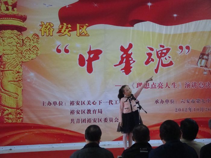 10月26日上午,裕安区中小学“中华魂”《理想点亮人生》主题演讲总决赛在六安九中报告厅隆重举行。本次比赛由裕安区关心下一代工作委员会、区教育局、团区委主办,六安九中承办。裕安区部分乡镇及城区中小学共19名选手参加了决赛。