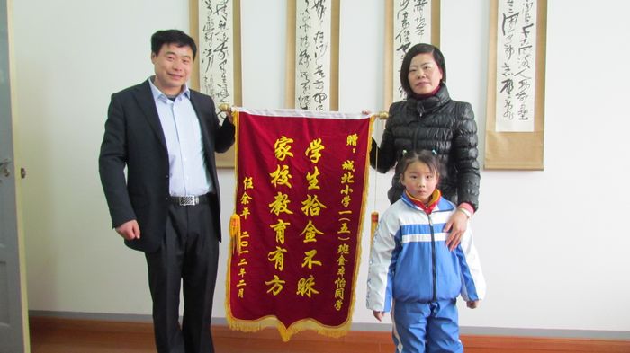 小学生拾金不昧,大意失主四千余元失而复得。日前,为感谢我校学生金本怡拾金不昧的高尚品德,失主