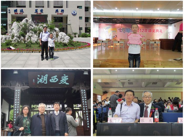 活动中,张庆老师向七彩语文少儿基金会和受奖孩子捐书的一幕最令人感动。张庆老师是苏教版语文教材的主编、凤凰语文教科所的所长,今年已经是一位满头银发的74岁的老人了。六年前,他被查出患上白血病,这无异于晴天霹雳。但对这突如其来的打击,张老师没有悲观、失望,更没有被击垮。在“不怕死,争取活,活得好”的坚强信念的支撑下,在医生的精心治疗下,在家人朋友、同事尤其是那么多热爱他的老师和孩子们的鼓励下,顽强地与病魔做斗争并终于战胜病魔,渐渐康复。书写了一段精彩的人生传奇。当张老师在会上大声宣布:“超过五年没有复发了,可以说我已经战胜了白血病”时,台下响起了经久不息的掌声。这掌声包含着大家对他由衷的敬佩 、热爱和祝福,还有深深感动。