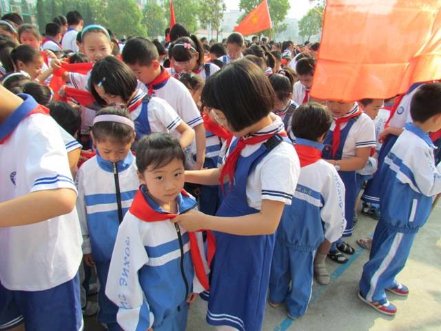 在熟悉而亲切的队歌声中,少先队入队仪式拉开帷幕。活动中,大队辅导员邹老师宣读了新批准入队队员名单,老队员们为新队员戴上了鲜艳的红领巾;紧接着大队辅导员邹老师带领全体队员进行了庄严的宣誓后,学校领导冯校长又进行了热情洋溢的讲话,并对新老少先队员们提出了殷切的期望。最后,在全体队员呼号之后,活动结束,全体同学在队歌声中有序退场。