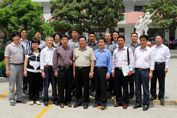 两校领导班子成员与教育局领导在一起合影留念