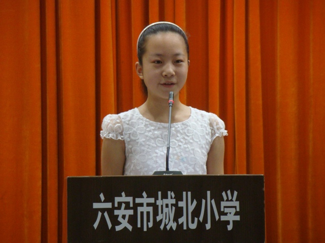 毕业生代表六(9)班的饶可欣同学代表2012届毕业生发言。首先,饶可欣同学代表全体毕业生,向多年来给以辛勤教诲的各位老师致以衷心的感谢和崇高的敬意。然后,饶可欣同学回首了在城北小学的生活与学习时光,以及成长的点点滴滴。最后,饶可欣同学表示,毕业生将努力学习,报答母校的培养。