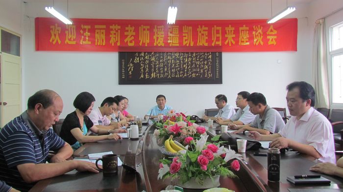 7月15日下午,城北小学隆重举行了欢迎汪丽莉老师援疆支教凯旋归来座谈会。区教育局党委书记鲍传满,人事股卢兴海、刘浩,办公室万继胜,学校领导班子全体成员以及汪丽莉老师的亲属参加了会议。座谈会由高兰校长主持。