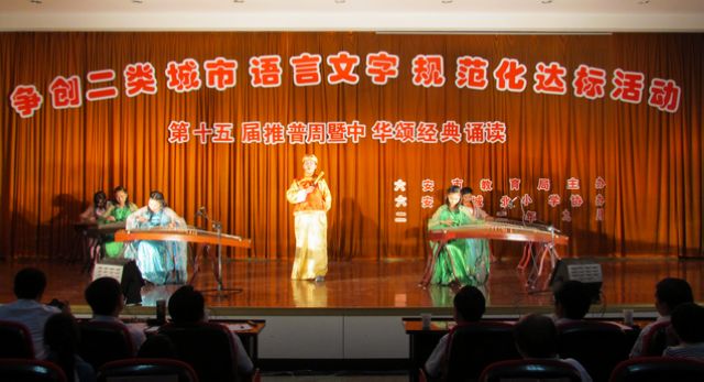 此次经典诵读活动由六安市教育局承办,億彩网协办,旨在进一步营造推广普通话的良好氛围,展示六安市语言文字应用的成果,促进迎接省二类城市语言文字的评估工作。