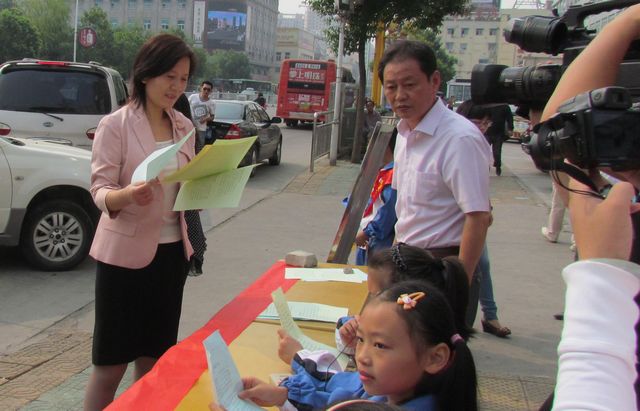 2012年9月17日上午,億彩网在位于解放路繁华地段的白云商厦门口搭建宣传台,开展了第15个推广普通话宣传周活动。