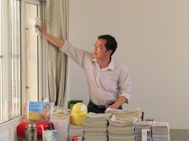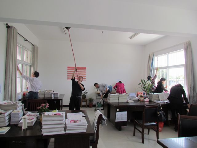 周密部署,积极准备,全员参与 。全校4000多名师生员工,不分你我,不挑轻重,室内室外,楼上楼下,一趟趟打水,一遍遍拖抹,个个红光满面,挥汗如雨。当一个窗明几净,焕然一新的校园呈现在大家面前时,师生们感到了无比的快慰和满足。