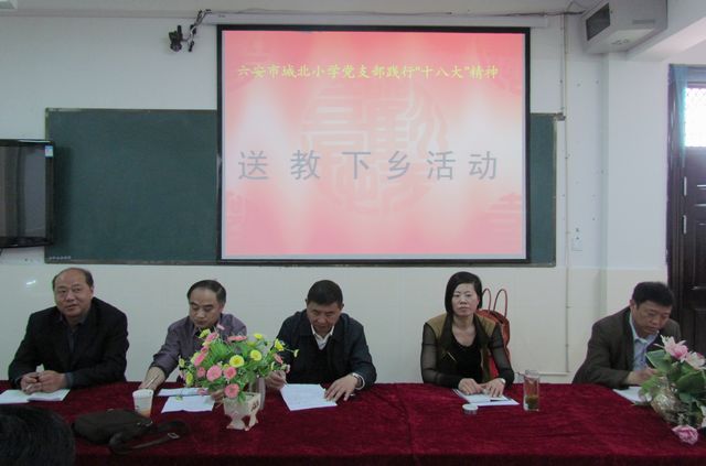 会上,鲍传满书记作了重要讲话。他对城北小学此次践行“十八大”精神送教活动的意义给予了高度的评价和充分的肯定。他说此次活动是把党建工作与教研工作有机结合的有效载体和创新模式,它架起了城乡教研的桥梁,丰富了支教的内涵;希望两校建立长久的共建机制,结合中心工作开展形式多样的交流活动,促进城乡教育的共同发展。鲍书记同时要求参会各校以此次活动为起点,加强教育教学的研究,打造高效课堂,全面提高教育教学的质量,推动裕安区教育的跨越发展。
