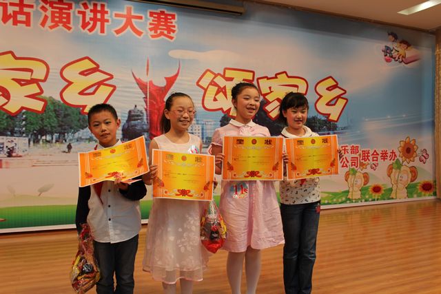 6月1日上午,市小学生“爱家乡 颂家乡”普通话演讲比赛在安徽金商都隆重举行。经过紧张激烈的角逐,我校选送的四位选手囊括了大赛的前三名,分获大赛的一、二、三等奖,战绩骄人。