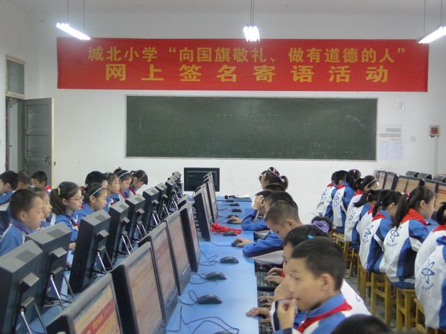 2013年9月24日上午,城北小学少先大队精心组织和指导广大少先队员参与“向国旗敬礼、做一个有道德的人”网上签名寄语活动。