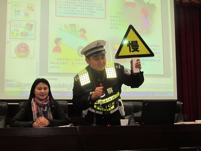 2月26日下午两点半,在学校学术报告厅,市交警二大队的警官丁康首先为师生上了一堂生动、精彩的交通安全课。交警叔叔以“小学生道路交通安全知识”为主题,结合队员们的日常生活,从“安全教育的重要性”、“认识交通信号标志”、“安全乘车常识”等方面向师生宣讲道路交通安全知识,教育广大学生要文明、安全出行,坚决摒弃交通陋习,抵制不文明行为,自觉遵守道路交通安全法规,确保自己和他人生命财产安全。讲座中,交警叔叔结合视频短片边讲边现场演示,并与台下学生互动,学生参与热情高,现场气氛热烈,将活动不断推向高潮。