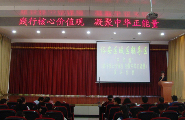 为用社会主义核心价值体系引领小学生成长成才,裕安区城区教育辅导区于10月16日下午在城北小学举办了“践行核心价值观,凝聚中华正能量”“中华魂”主题演讲比赛。