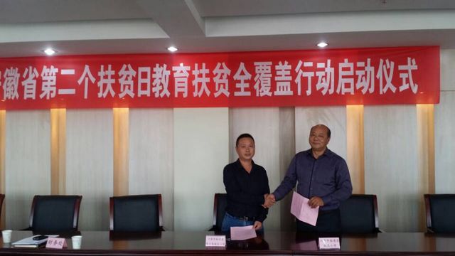 10月17日下午,安徽省第二个扶贫日教育扶贫全覆盖行动启动仪式在省教育厅会议室隆重举行。省教育厅及各地区教育行政部门有关领导出席仪式。我校与狮子岗乡杨店小学结对共建正式签约。