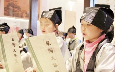 “人之初,性本善,性相近,习相远,苟不教,性乃迁……”今年9月19日,正值全市各中小学开学之际,城北小学二年级语文教师许芳的班级教室内正在进行新学期家长会,教室中传出饱含激情地朗诵国学经典《三字经》的童声。老师与家长不再是贯穿始终的“主角”,该班7名学生站在讲台,身着校服,佩戴红领巾,响亮的声音回荡在校园。这是城北小学全面开展“国学经典诵读”教育中的一幕。