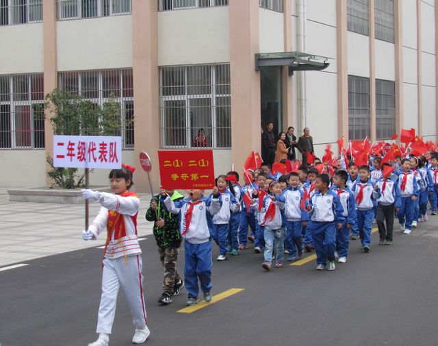 上午8时半,校支部书记、副校长方家社宣布校运会开幕。伴随着高昂激越的《运动员进行曲》和主持人富有激情的解说,校鼓号队、花环队、鲜花队、气球队、彩旗队、运动员代表队排列着整齐的方阵,喊着响亮的口号,迈着矫健的步伐,在旗手的引领下,依次有序地走过主席台,接受应邀莅会领导的检阅。随后,区教育局党委委员、城北小学校长高兰致开幕词,区教育局党委书记鲍传满发表了热情洋溢的讲话,裁判员、运动员代表分别作了表态发言。