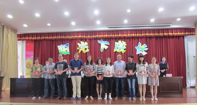 表彰大会由副校长张敏主持。高兰校长发表热情洋溢的致辞,教科室陈明珩主任宣读了优秀学生家长名单。在高昂激越的音乐声中,各级领导为获表彰的学生家长颁发了荣誉证书。
