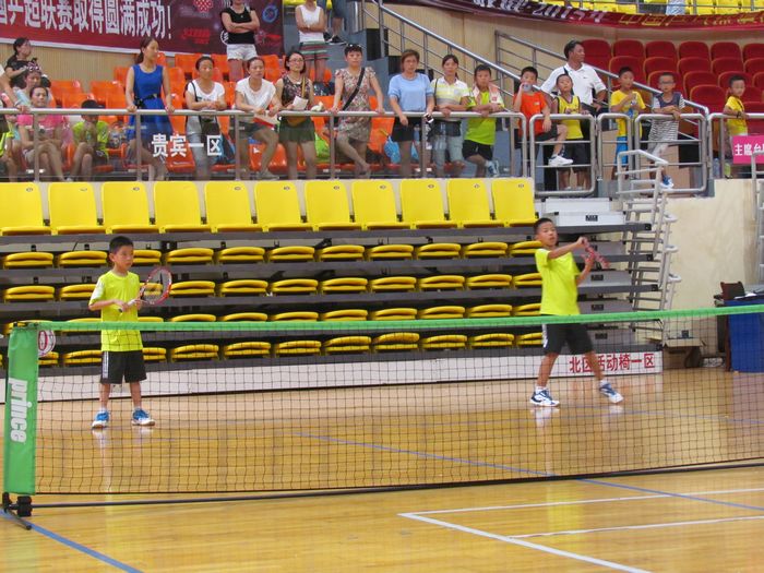 2015年8月9日,全国少儿网球(短网)比赛在江西鹰潭拉开帷幕。经过六天的激烈角逐,我校网球队夺得了男子B组双打冠军、亲子双打亚军。