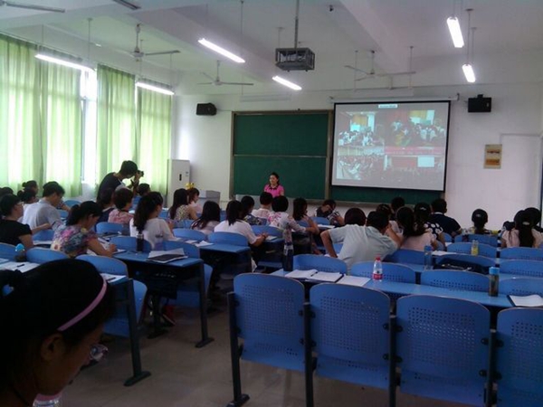 培训中,许芳老师作了题为《小学国学经典教育策略》的专题报告。她从加强校园经典文化建设、名师工作室引领国学教育、邀请国家级名师来校指导国学诵读活动、举办校园经典诵读比赛四个方面向学员们介绍了我校开展经典诵读活动以来的经验、成果。另外,她还就自己在语文教学与国学教育相结合方面谈了体会和做法,整个报告历时3个小时。