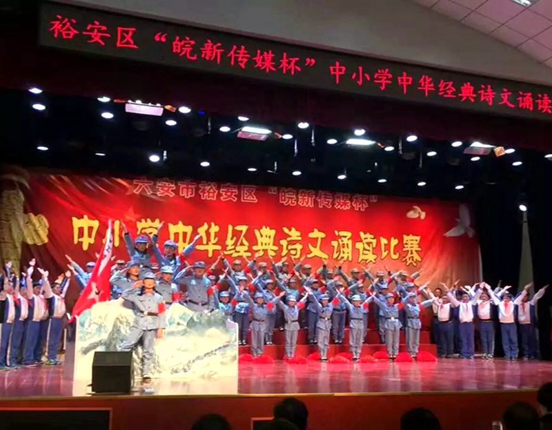 11月29日, “皖新传媒杯”裕安区中小学中华经典诗文诵读比赛在城北小学演播厅圆满举办。经过各乡镇层层选拔,共有21支参赛队伍分组进行了激烈的角逐。为纪念红军长征胜利80周年,落实立德树人的根本任务,我校编排的诵读节目《长征》,以独具匠心的创意和震撼人心的表演一举夺得全场最高分9.74分,荣获小学高年级组特等奖。此次经典诵读活动充分展示了我校学生对我国传统经典文化丰富的积累积淀和朗诵表演的艺术才华,极大地激发了学生对经典诗文诵读与积累的热情,为学校素质教育增添了光彩的一笔。12月3日,我校将代表裕安区参加全市经典诵读大赛,预祝同学们再获佳绩!