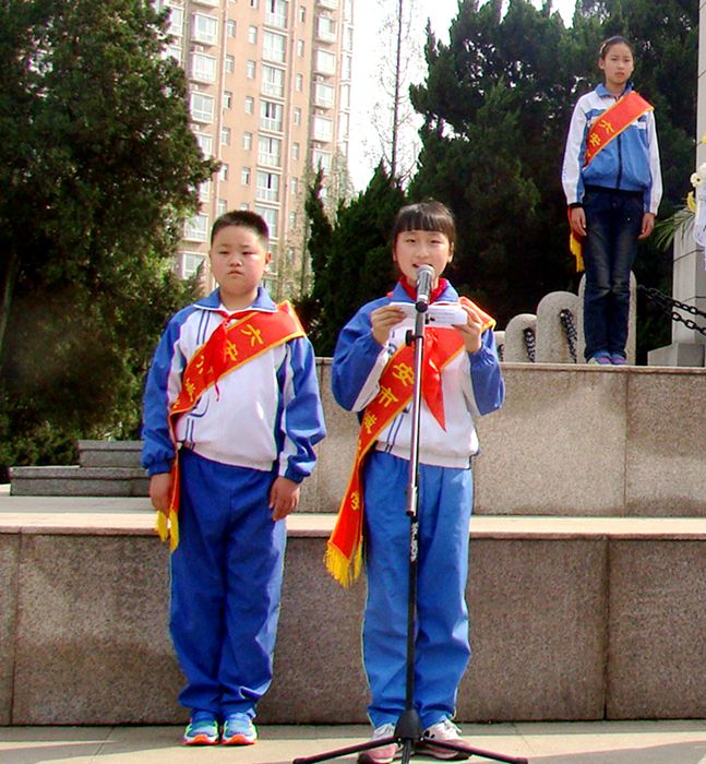 活动由六一中队袁树林同学主持,首先是少先队员代表向烈士献上花篮,全体师生默哀三分钟,表达对革命烈士最崇高的敬意,接着由少先队员代表讲话,决心要以实际行动来继承先烈们的遗志,奋发学习,为振兴中华民族而努力奋斗。最后,少先大队辅导员蒋老师带领同学们重温入队誓词。