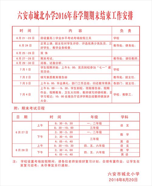 2016年春学期期末结束工作安排