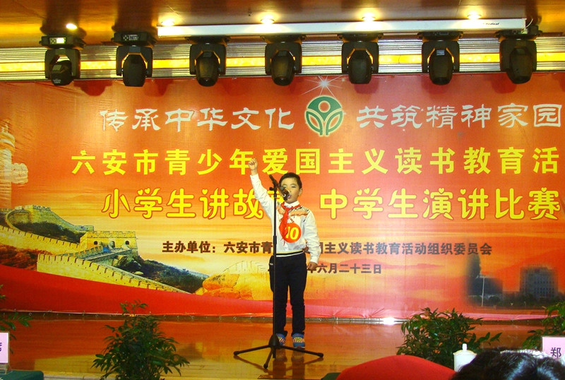 6月23日,六安市举行以“传承中华文化,共筑精神家园”为主题的全市青少年爱国主义读书教育活动――小学生讲故事、中学生演讲比赛,来自市直及各县区8支代表队的31名选手参赛。