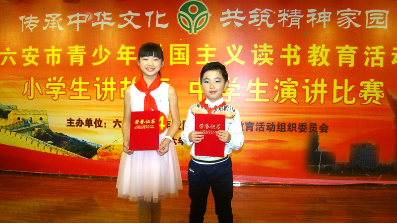 比赛现场角逐激烈,小选手们绘声绘声地讲述着一个个故事,积极向上、催人奋进。我校代表裕安区参赛的张帆同学和鲍梓元同学,以动人的讲述、真情的演绎,打动了在场的观众和评委,一举夺得女生组第一名和男生组第二名的好成绩。张帆同学还将代表六安市参加安徽省小学生讲故事比赛。