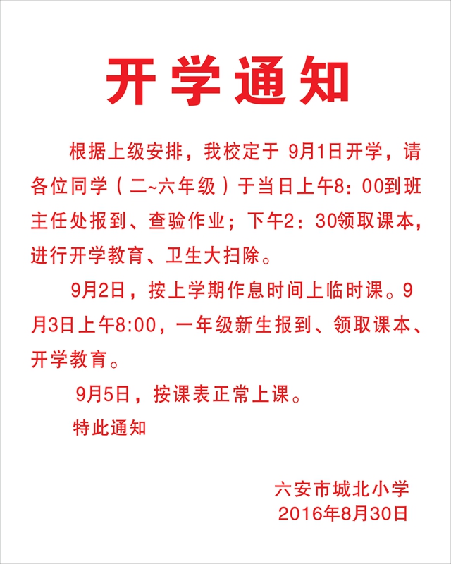 开学通知(本部)