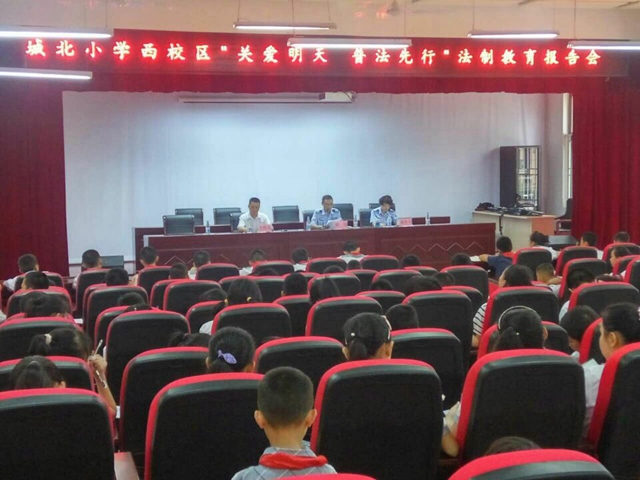 为增强学生的法律意识,提高他们的自我保护意识,营造文明、平安、和谐的校园育人环境,9月9日上午,城北小学西校区小学邀请鼓楼司法所汪所长和张副所长为五六年级200余名师生在学术报告厅举行了一场别开生面的“关爱明天,普法先行”法制教育讲座。