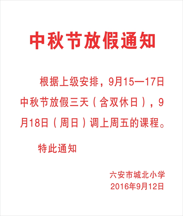 中秋节放假通知