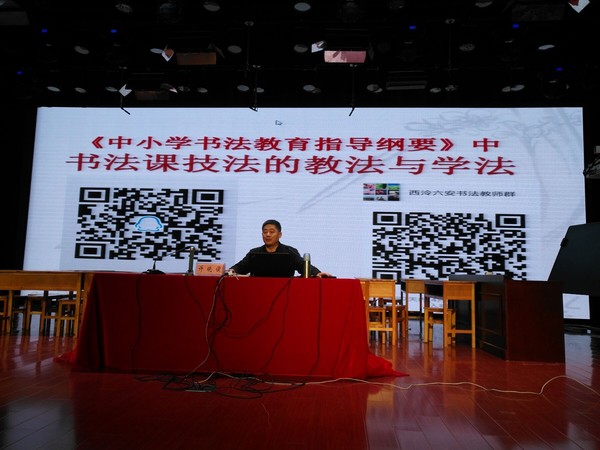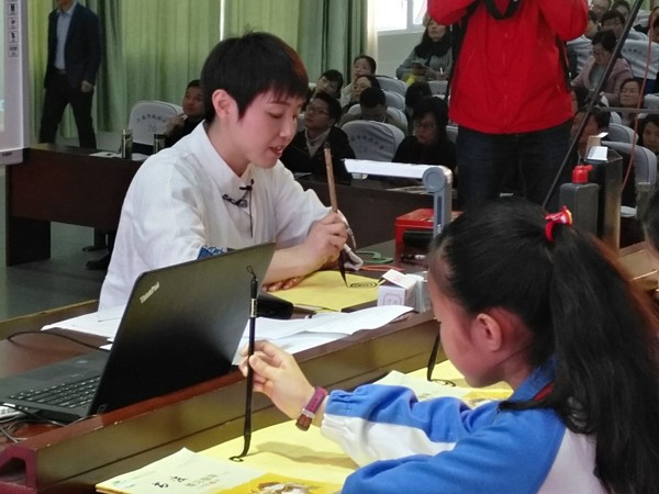 下午,书法家教师方之、蔡正文代表全体评委先后对本组推荐获奖展示课进行了精到点评,西泠印社版书法教材执行主编许晓俊就书法教育指导纲要、教材的理解进行了点拨,重点就毛笔临摹和硬笔写字教学存在问题进行了成因分析和矫正方法传授。