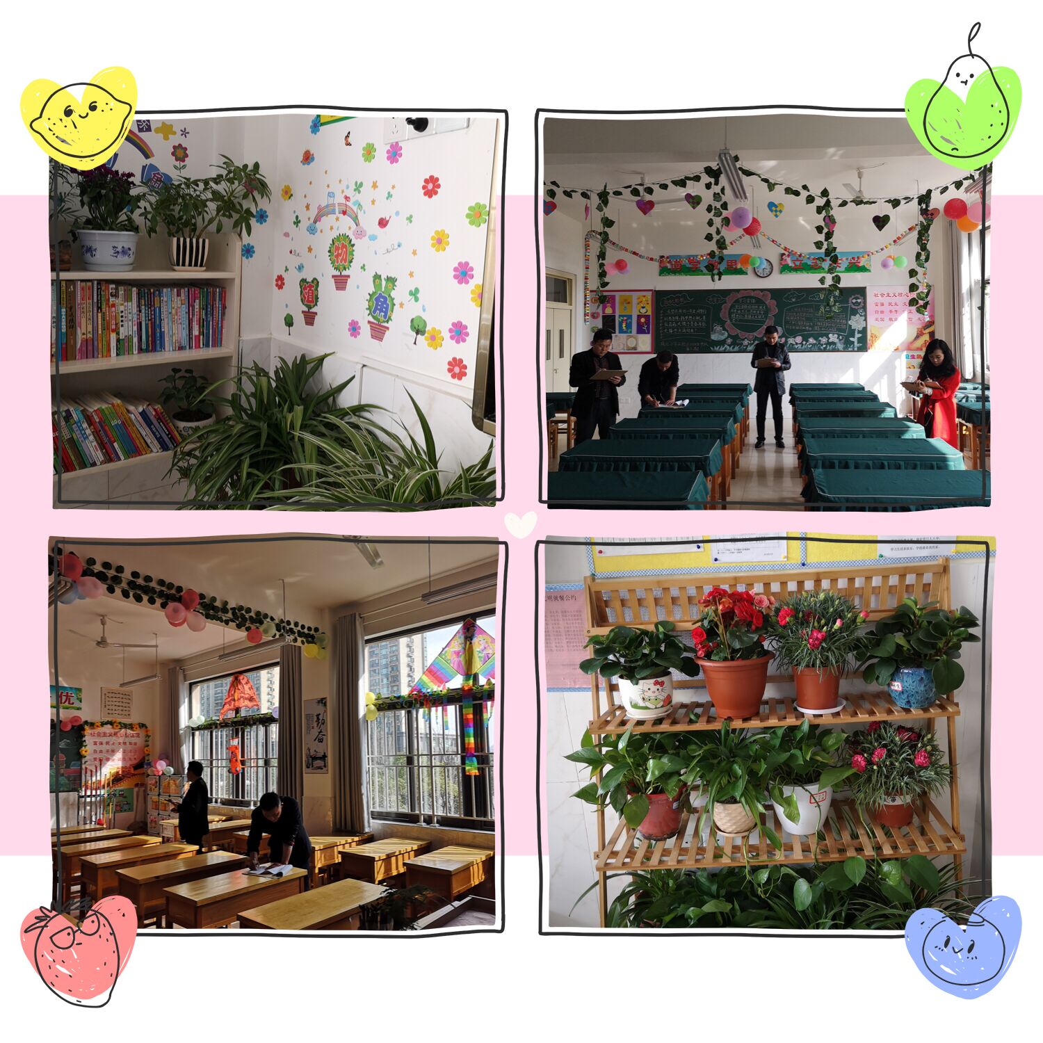 我校各年级组高度重视,一接到通知,各班主任、办公室主任、功能室管理员就充分利用课余时间,把教室、办公室当作自己的家,设计整体方案,匠心独运,精心策划。很多热心的家长也积极参与进来。各室物品摆放有序,大方整洁。既注重总体和谐又处处体现细节的精心,突出个性与美感、简洁与实效,经过精心的设计与装饰,教室、办公室、功能室变得温馨雅致,透出浓浓的文化气息,真是班班有特色,室室皆精彩。