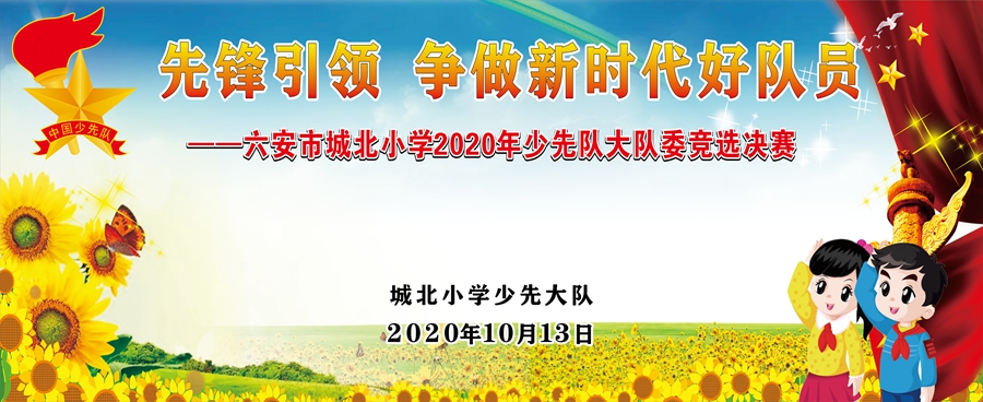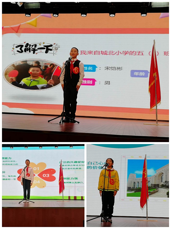 为了促进校少先队工作的顺利开展,增强少先队员的参与意识、民主意识、竞争意识,选出最优秀的少先队员担任大队委职务。 10月13日下午,队旗飘飘,队歌嘹亮,城北小学少先大队“先锋引领 争做新时代好队员”新一届大队委竞选决赛在演播厅隆重举行。