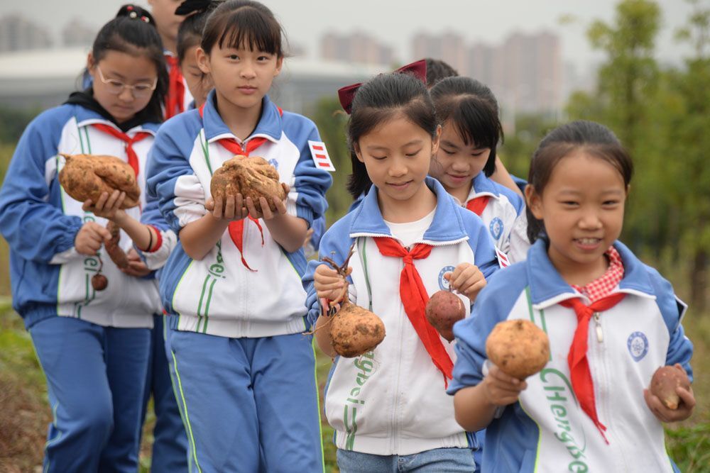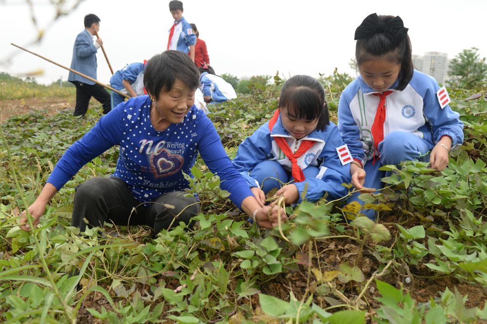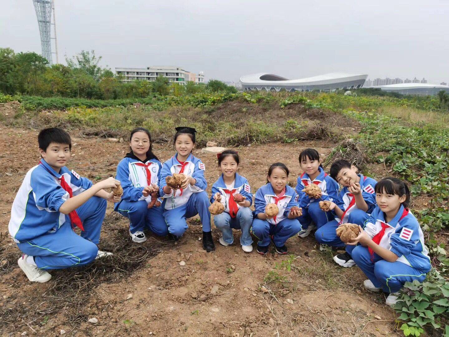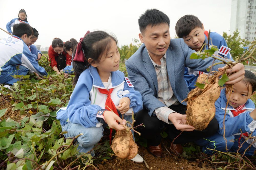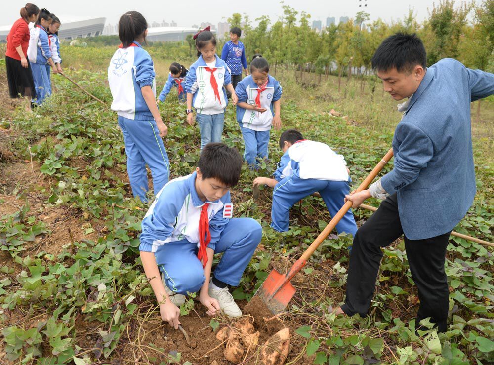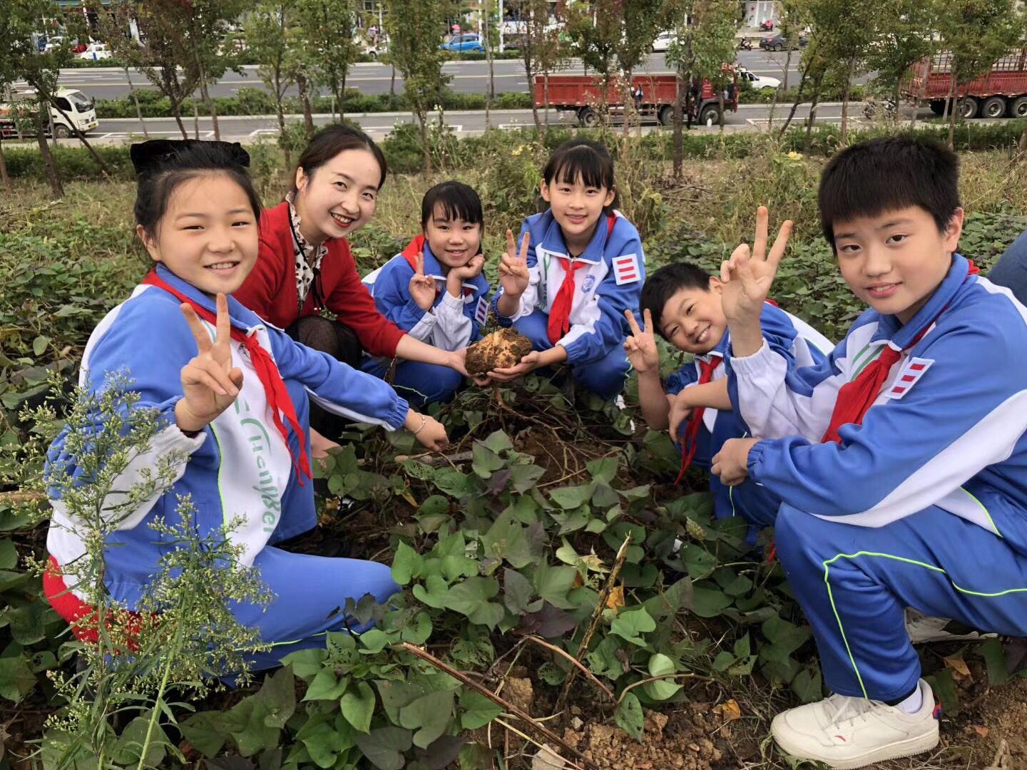 接下来,队员们在老师们的带领下,来到一片红薯地。“挖红薯喽!”队员们在老师的指引下,刨开泥土,看到大大的红薯露出头来,惊奇和喜悦溢于言表。
