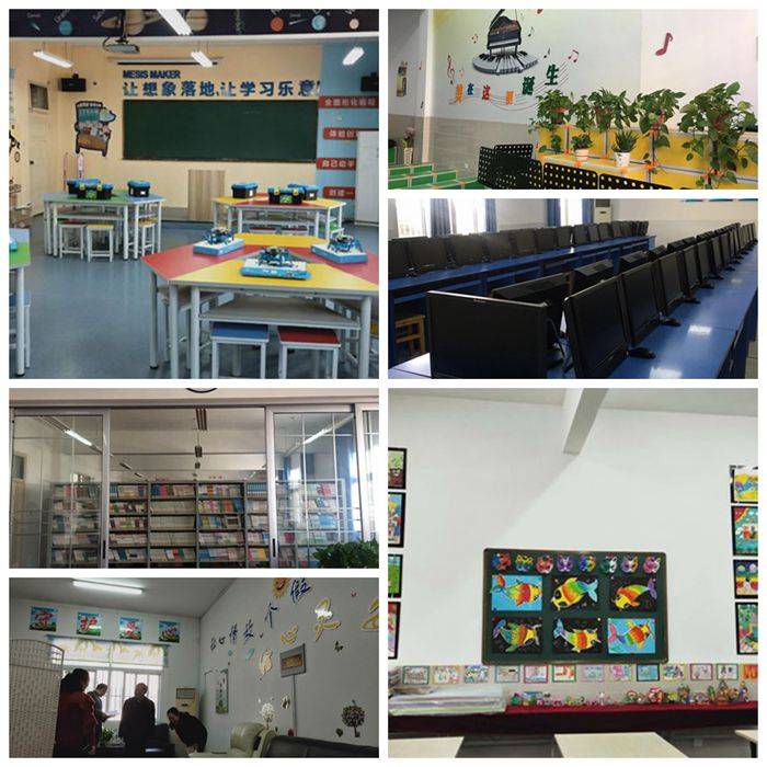 学校各功能室都能按规布置,契合学科特点,设计精心,墙面布置张贴有序,地面清洁,物品分类摆放。