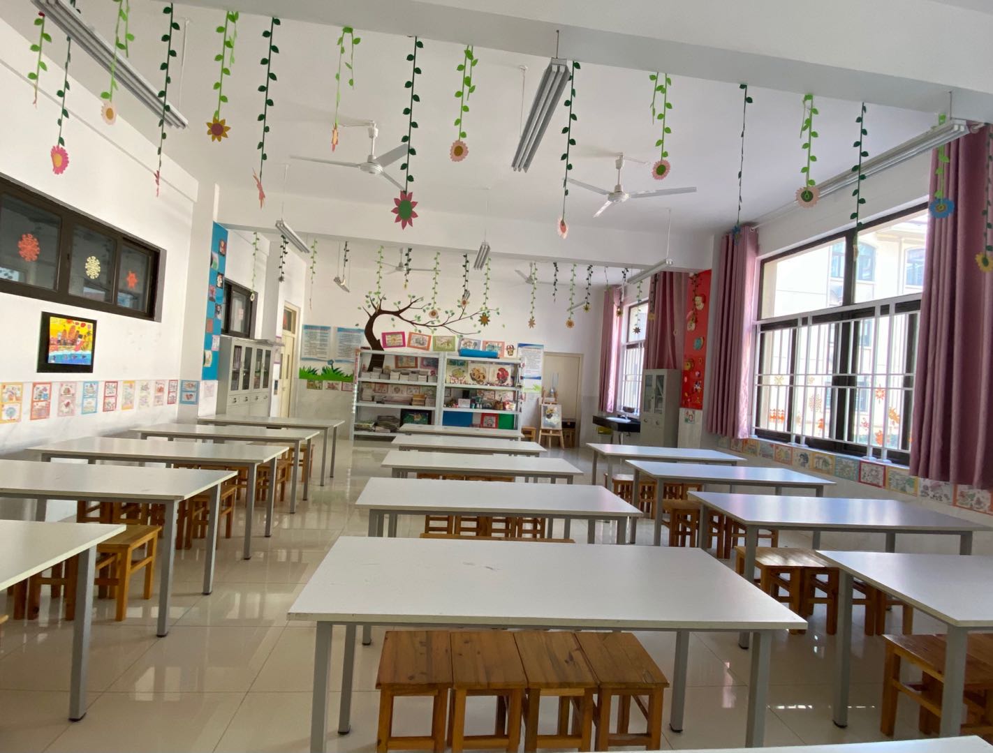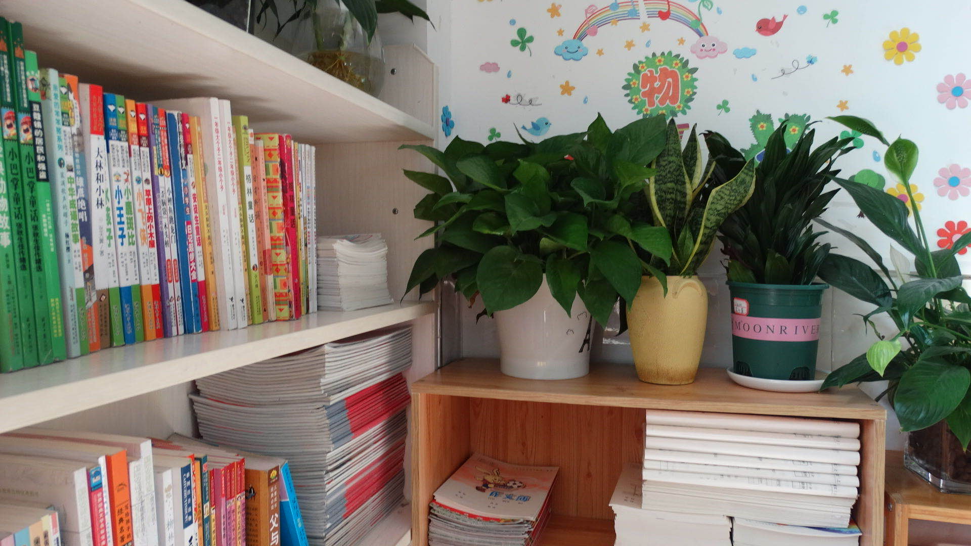 瞧!教室的图书角图书摆放整齐,为孩子们提供了源源不断的精神食粮:教室植物角的花草生机勃勃,尽管入秋却依然春意盎然:墙壁及黑板成了师生学习及展示才艺的另一方小天地,让人受益匪浅:教室的桌凳摆放整齐划一,地面洁净如新……