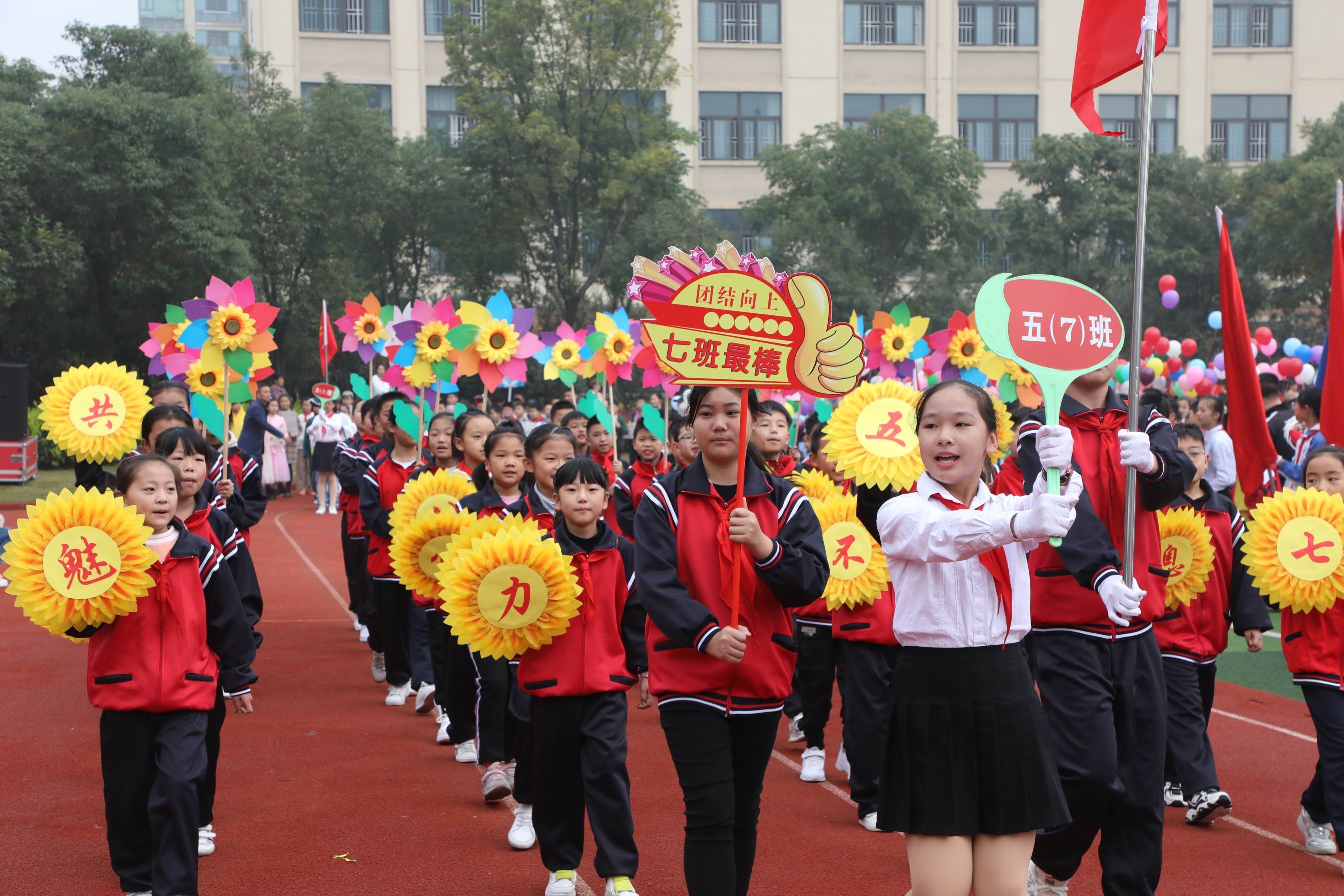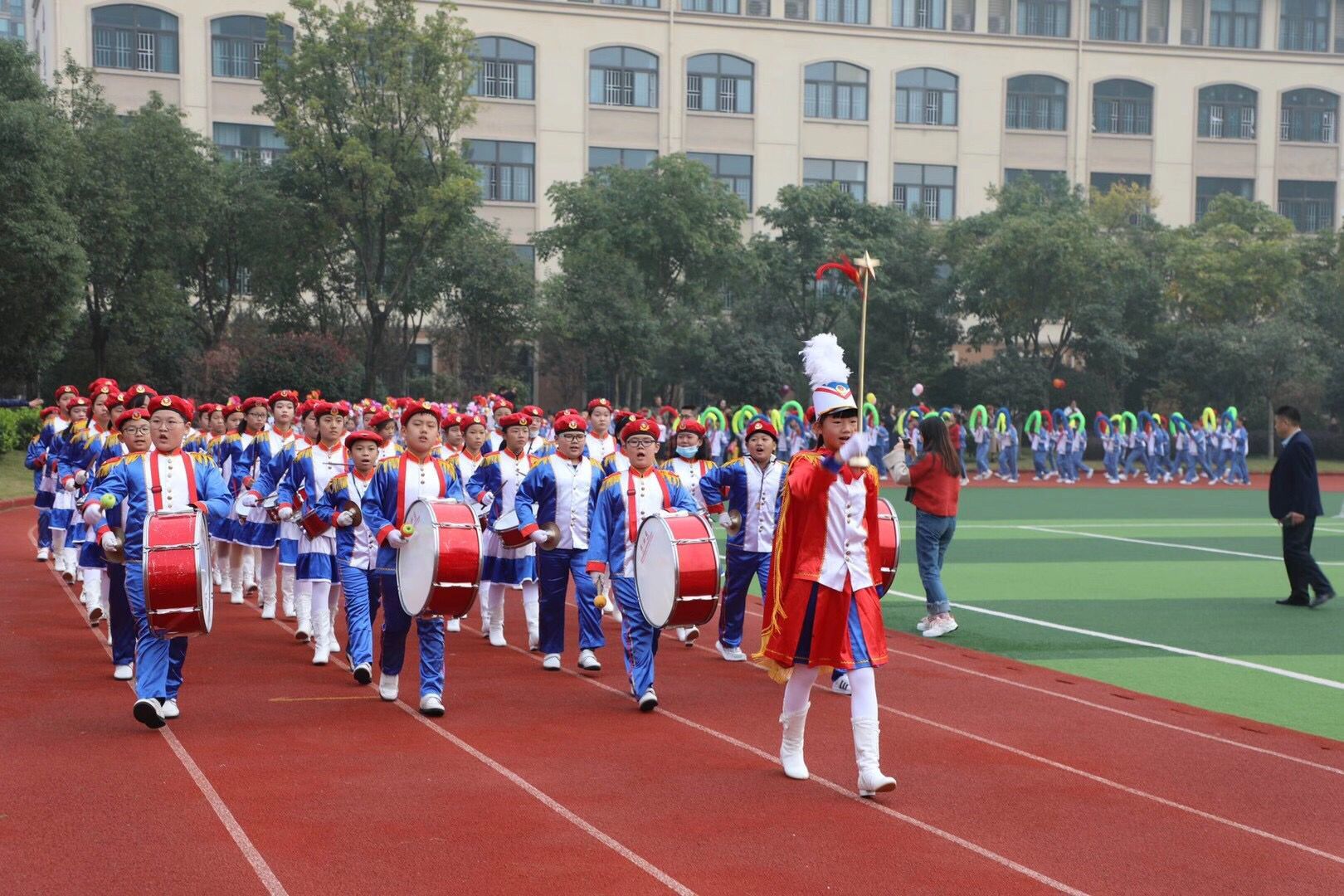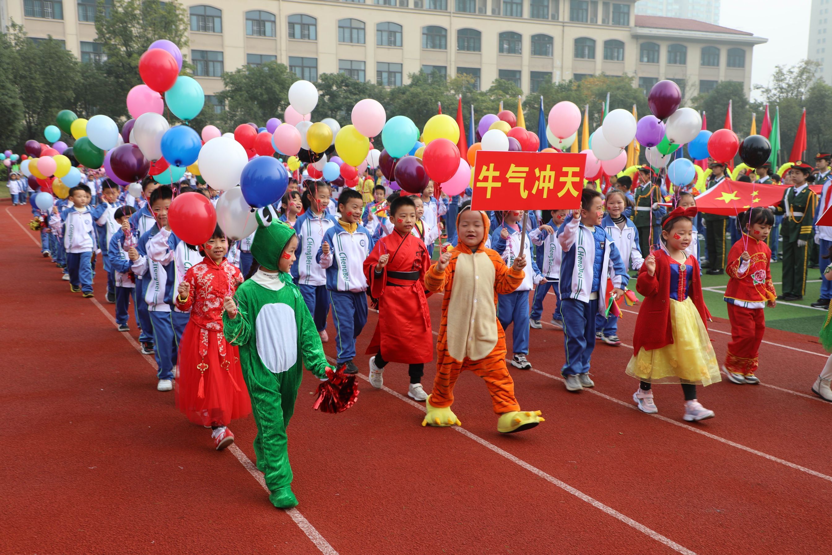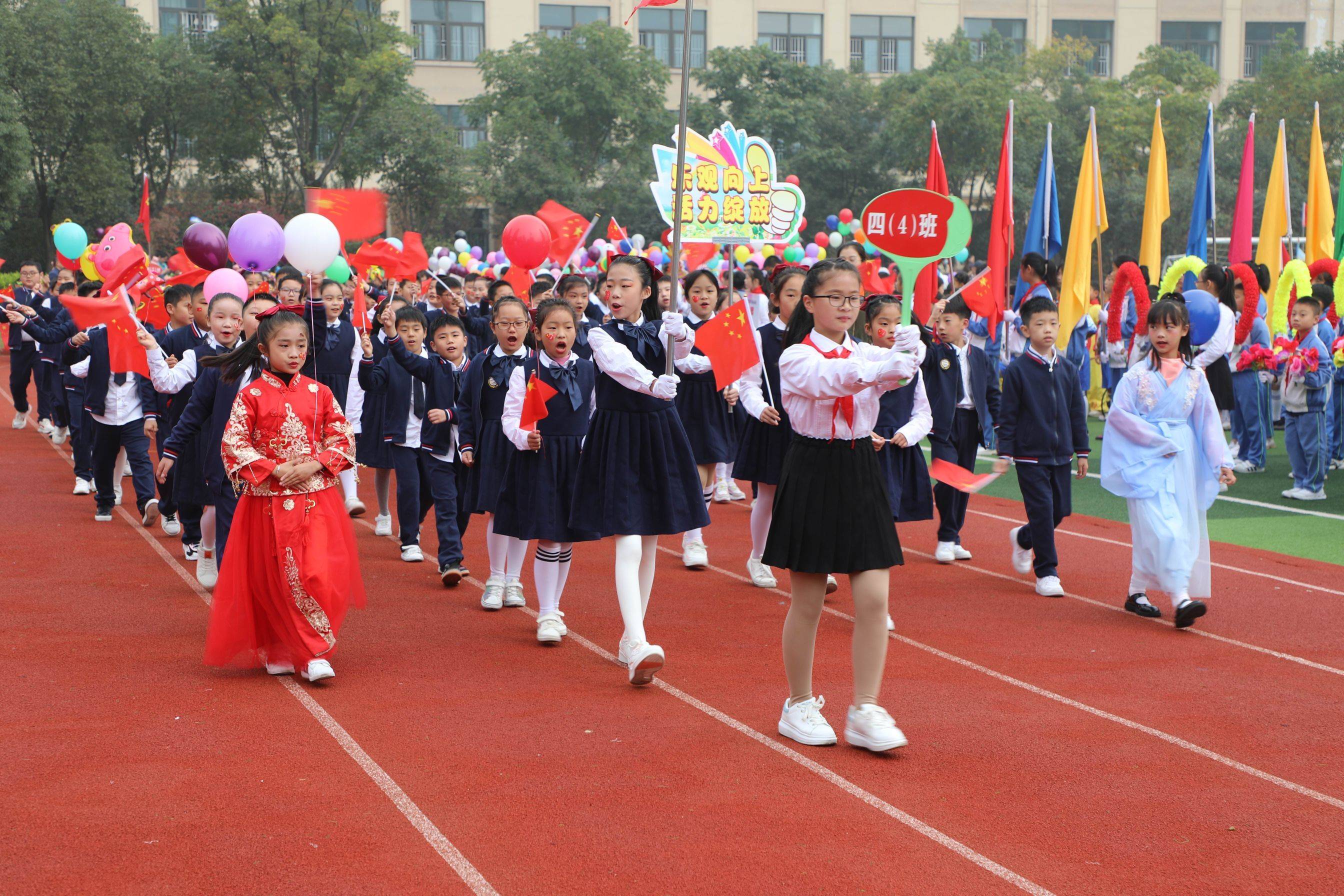 上午8时18分,城北小学党总支副书记、副校长方家社宣布第六届秋季运动会正式开幕。在激昂的《运动员进行曲》中,身着盛装的国旗队、鼓号队、花束和花环队、彩旗队率先出场,紧接着学校的各社团方阵呈上精彩纷呈的表演,之后便是让人期待的40个班级方阵。或是整齐划一的特色班服,或是五彩缤纷的民族服饰,或是各具特色的创意秀。可爱的孩子们使出浑身解数展示本班的风采,嘹亮的口号响彻蓝天,欢乐的笑脸映透白云。花样百出的开幕式让在场的领导和家长啧啧赞叹。
