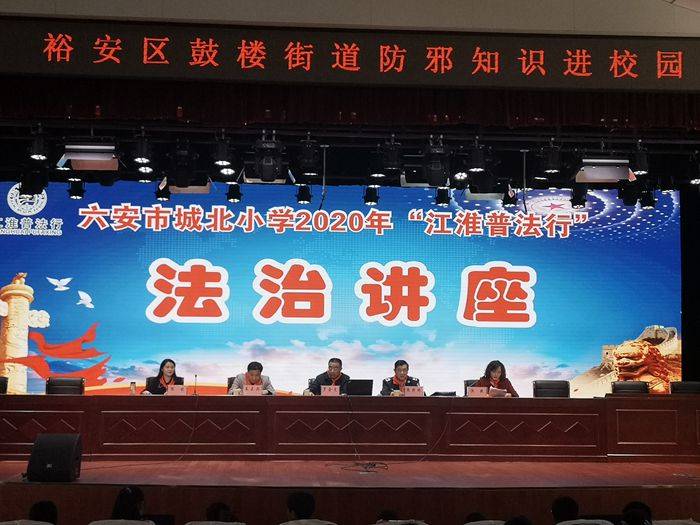 为进一步增强学生法治意识,创建平安校园,11月6日下午,億彩网在校演播厅举办2020年“江淮普法行”法治讲座。鼓楼街道办事处副主任罗会文、鼓楼街道维稳办主任王正兵、鼓楼司法所所长张新林等领导莅临活动现场。活动由德育处主任薛玲主持,五年级全体师生现场参会。