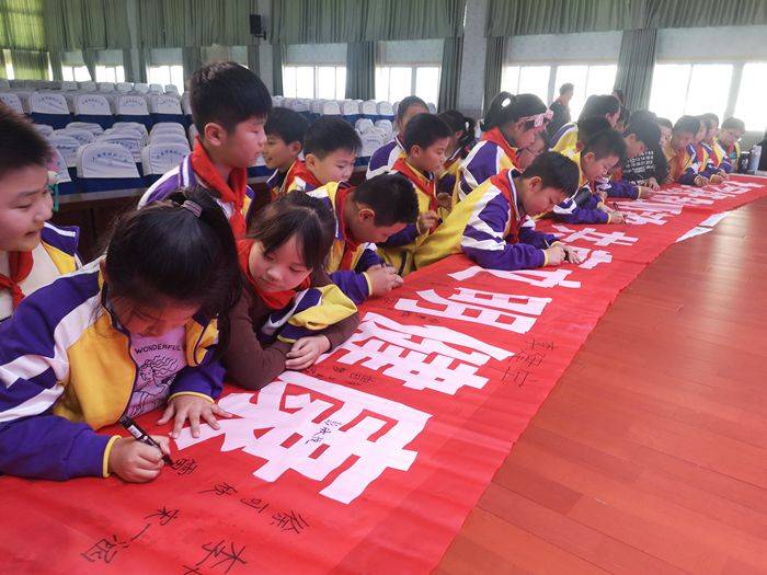 接着,罗会文副主任为大家做“反对邪教 崇尚科学”知识讲座。罗主任利用故事、图片、儿歌等孩子们喜闻乐见的形式,宣讲了什么是邪教、邪教的危害和如何抵制邪教。罗主任讲得绘声绘色,同学们听得津津有味。最后,参会学生代表纷纷走上讲台在“共同抵制邪教 共享文明健康”的条幅上签名立志。