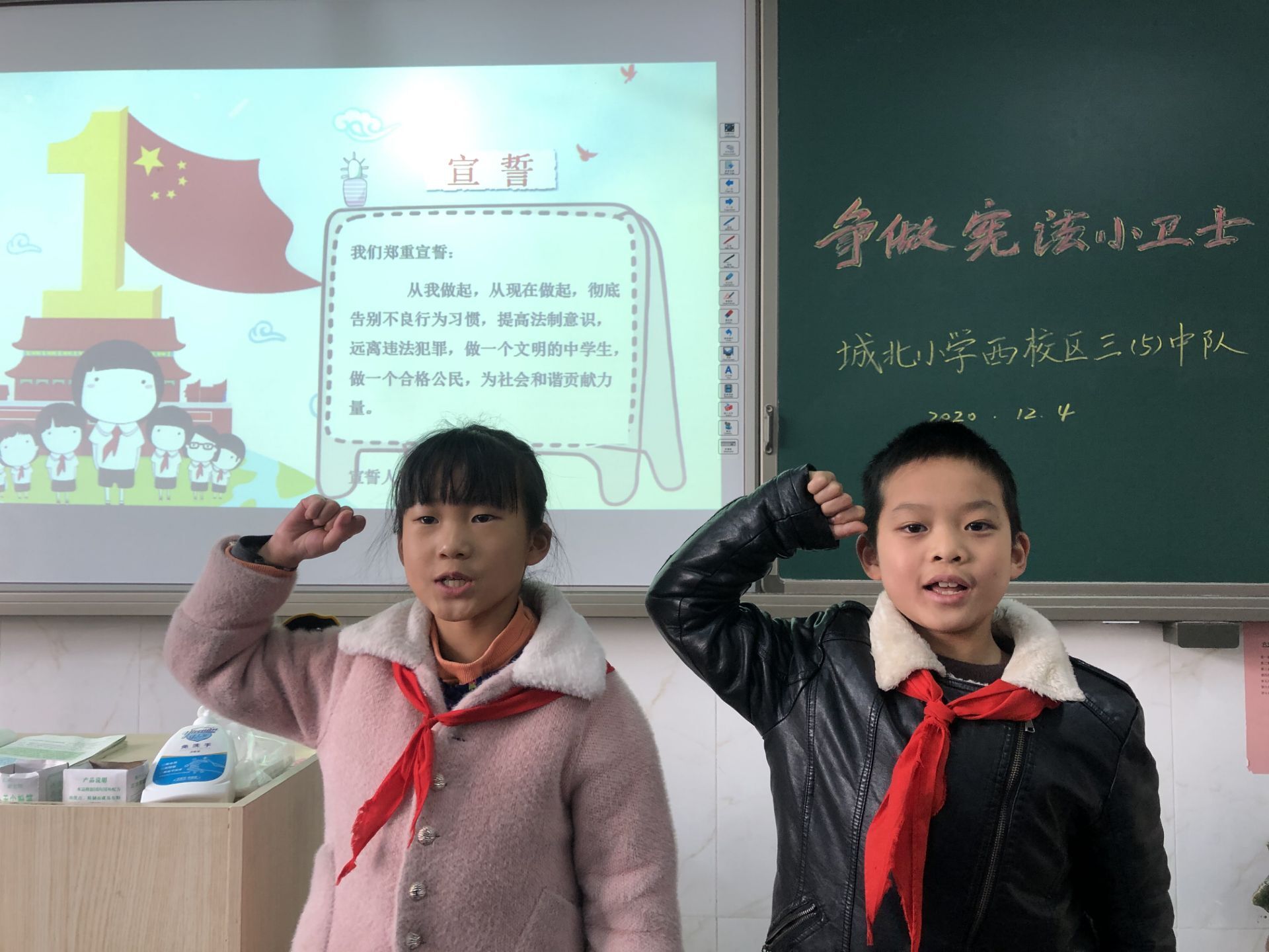 通过开展一系列“国家宪法日”宣传教育活动,在广大师生中掀起了学习宪法知识的高潮,增强了师生的法制观念。同学们纷纷表示:在校内要遵守校纪校规,在校外要遵守法律法规,争做有理想、有道德、有文化、有纪律的新时代好少年。(马晏茹)