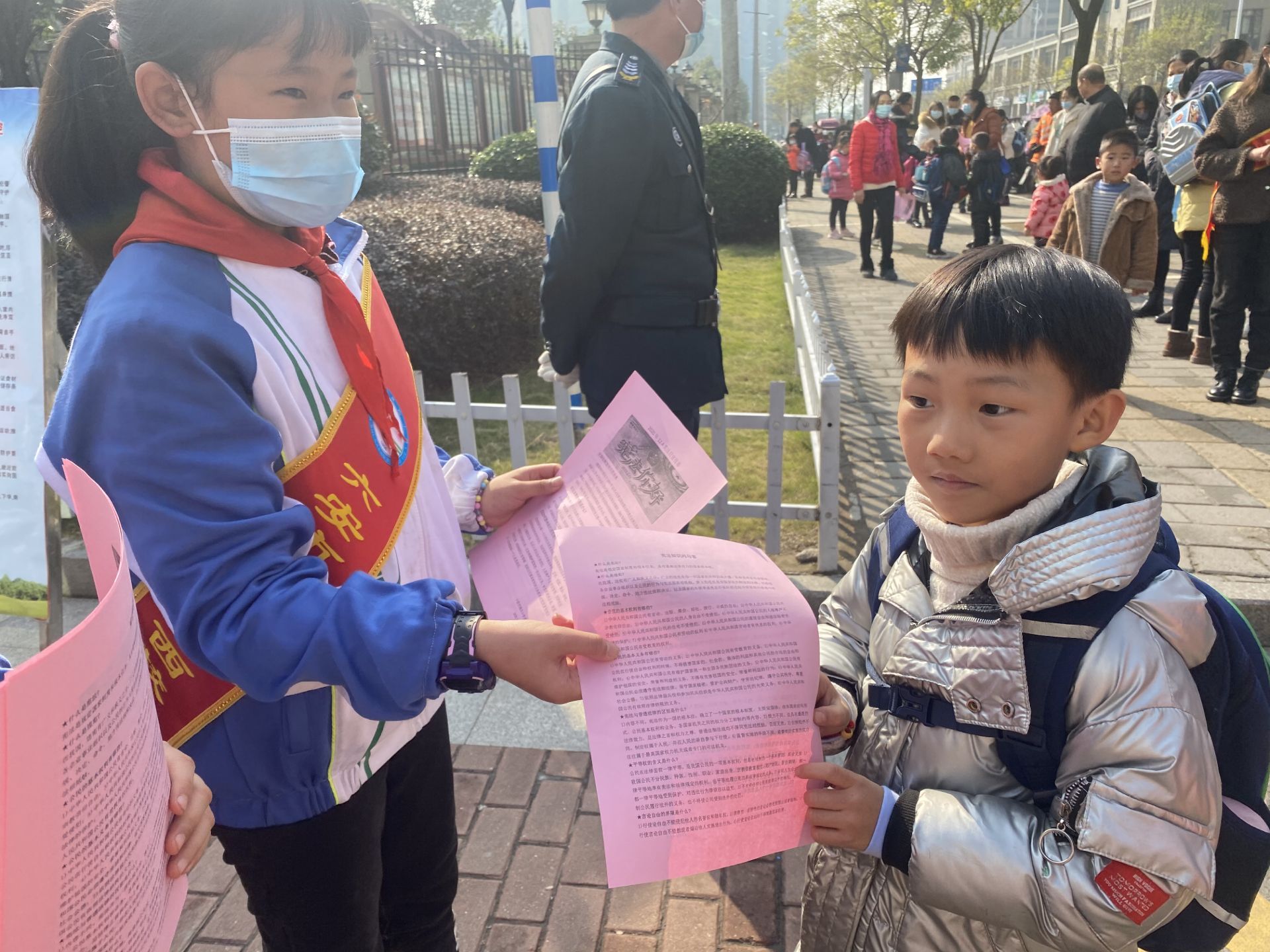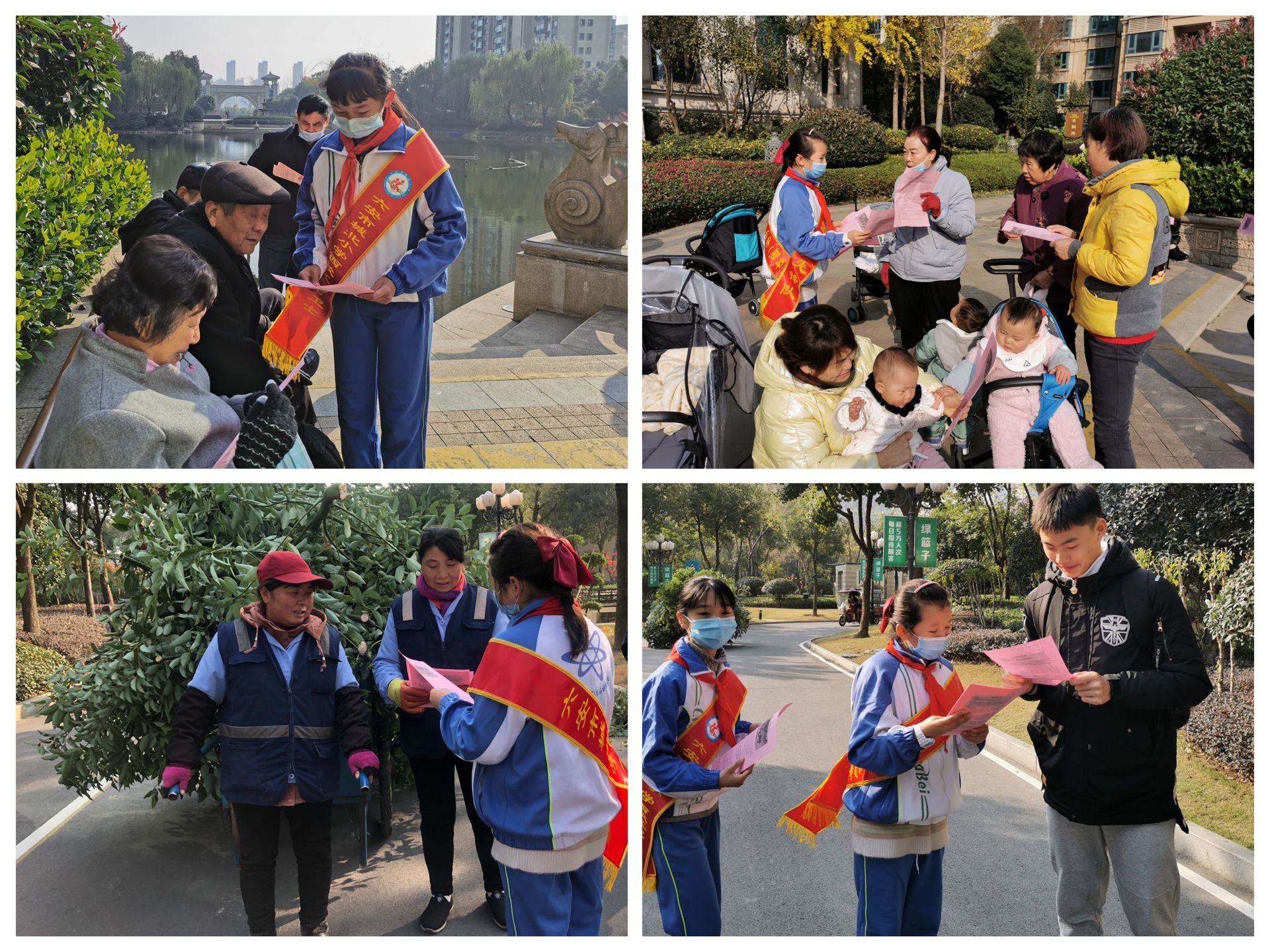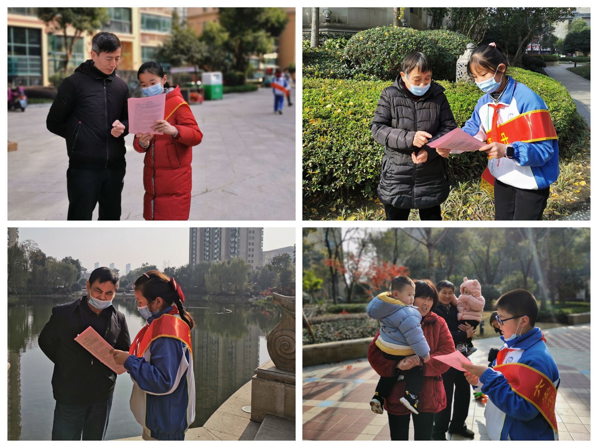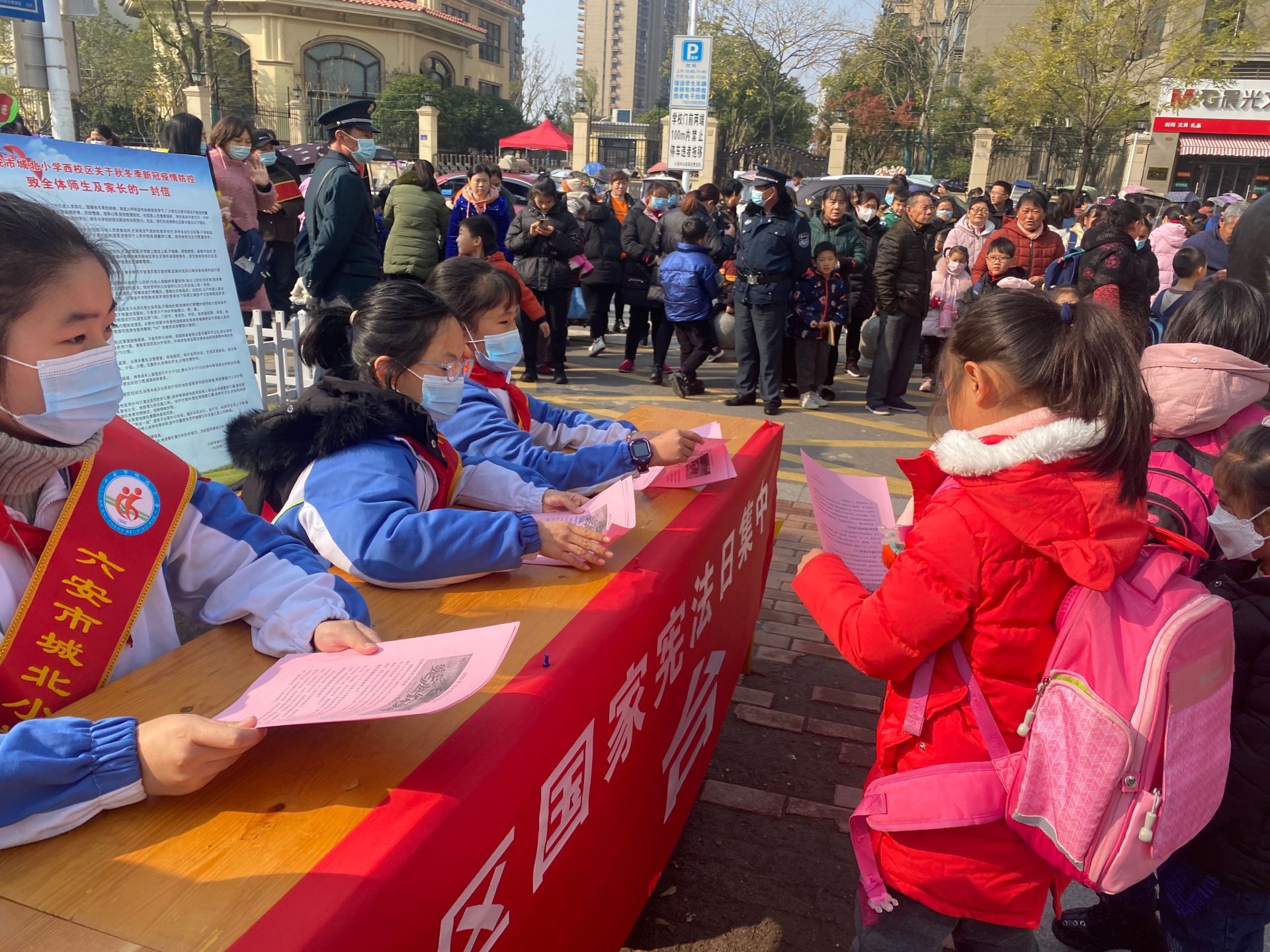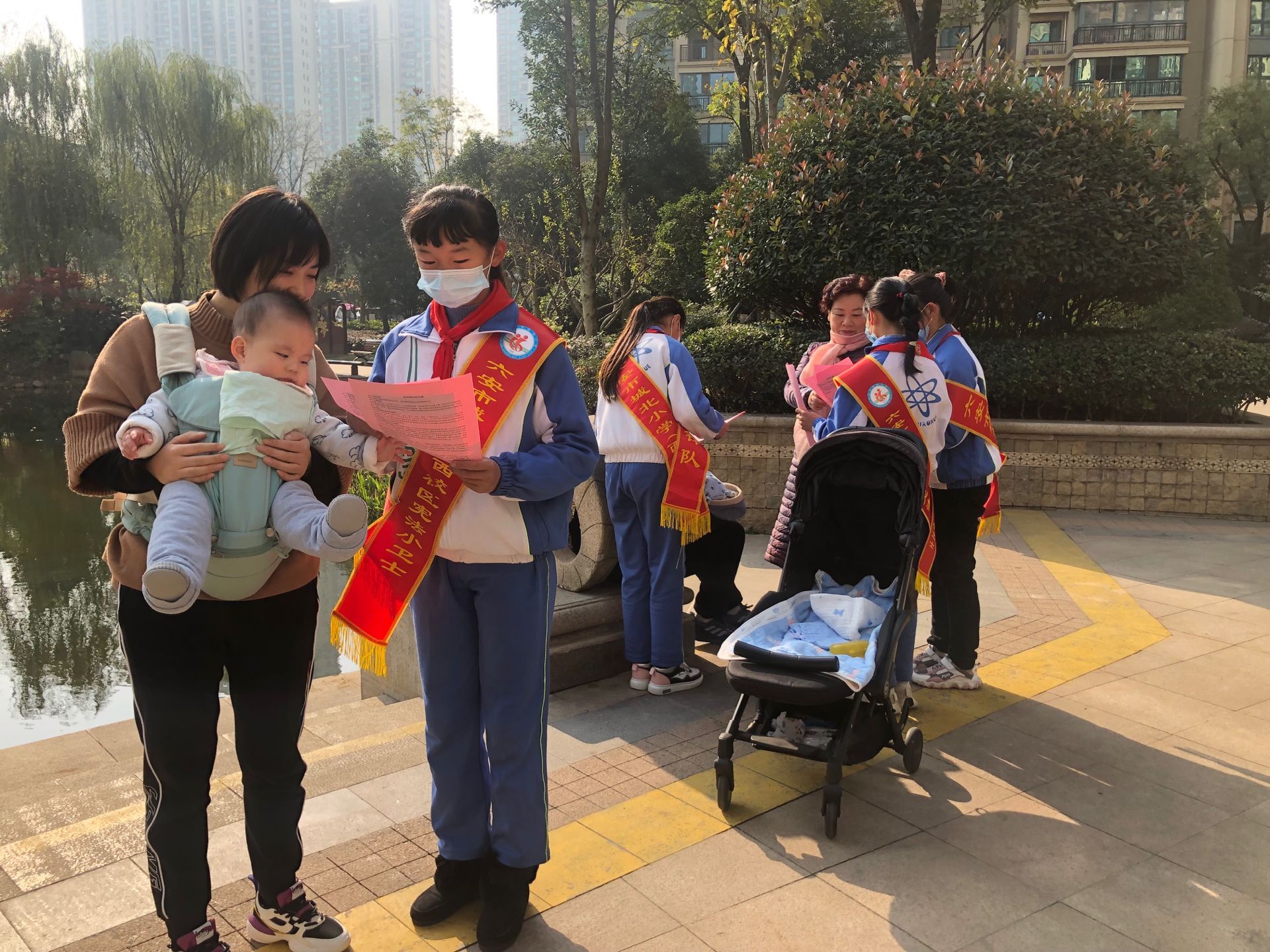 此外,为进一步扩大宣传范围,营造宣传氛围,宪法小卫士们走出校外,在校门口悬挂横幅,搭建宪法宣传台。部分教师和少先队员们来到恒大御景湾小区,现场为居民讲解宪法日的由来、宣誓的内容、宪法的重要意义等,并向市民发放宣传册,让宪法思想内化于心,外化于行。