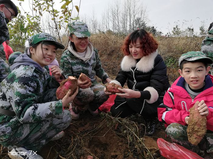 下午是劳动技能训练。在学习了内务整理之后,大家又一起走到田间地头挖红薯。同学们一起劳动,共同分享,个个满载而归,真正品尝到了劳动的艰辛,也领略到了收获的甜蜜。