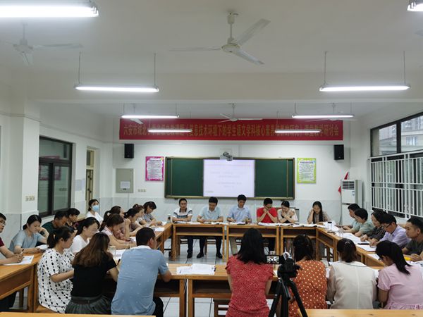 水晶帘动微风起,满架蔷薇一院香。初夏时节,正是挥洒汗水,播种希望的美好时光。2020年6月10日上午,六安市陈明珩名师工作室省级课题《信息技术环境下的学生语文学科核心素养培养的研究》课堂教学研讨活动在西校区一楼多媒体教室如期举行。工作室成员及全校36名语文教师全部参加,大家观课议课、互动交流,现场气氛热烈、效果显著。